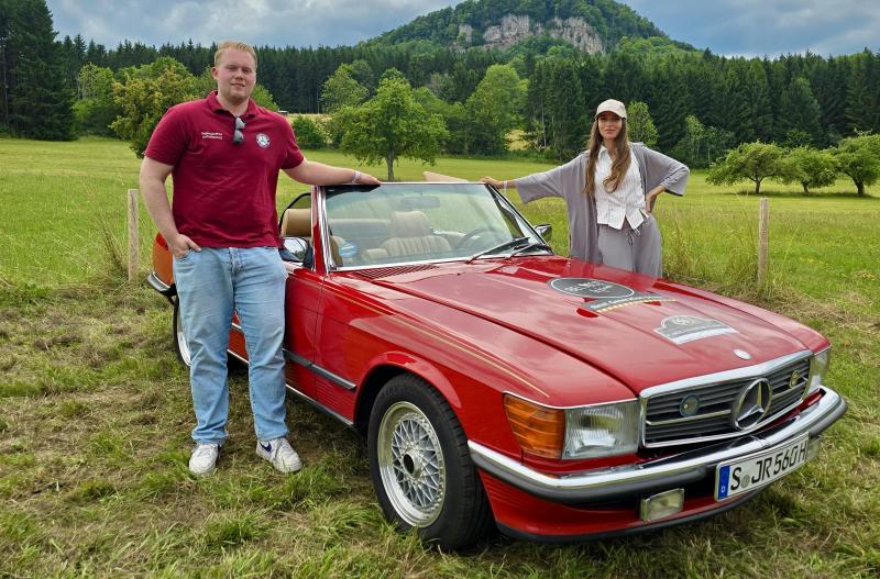 Feierliche Übergabe: Nachwuchsbeauftragter Carl‑Philip Kress übergibt den SL an Gewinnerin Marla. © Mercedes-Benz R/C 107 SL-Club Deutschland e.V.