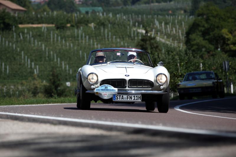 Auch wenn die ADAC Trentino Classic keine Pässefahrt ist, sind die Nebenstraßen im Trentino nahezu überall liebevoll geschlängelt. Wenn man da gleich zwei BMW 507 (wie ihn auch Elvis Presley fuhr), mehrere offene Mercedes 300 SL, auch den schicken 190 SL, den Alfa Spider oder den Porsche 356 mit fröhlich winkenden Beifahrerinnen sieht, erinnert man sich, wie man selbst mit dem VW Käfer, dem Renault R4 oder dem Opel Ascona nach Italien fuhr und überall diese schicken Wagen bewunderte. Schick und schnell sind die beiden FIAT Dino Cabrios mit Ferrari-Motor, die vielen Mercedes SL der verschiedenen Jahrzehnte und der Alfa Spider oder MG TD von 1953.