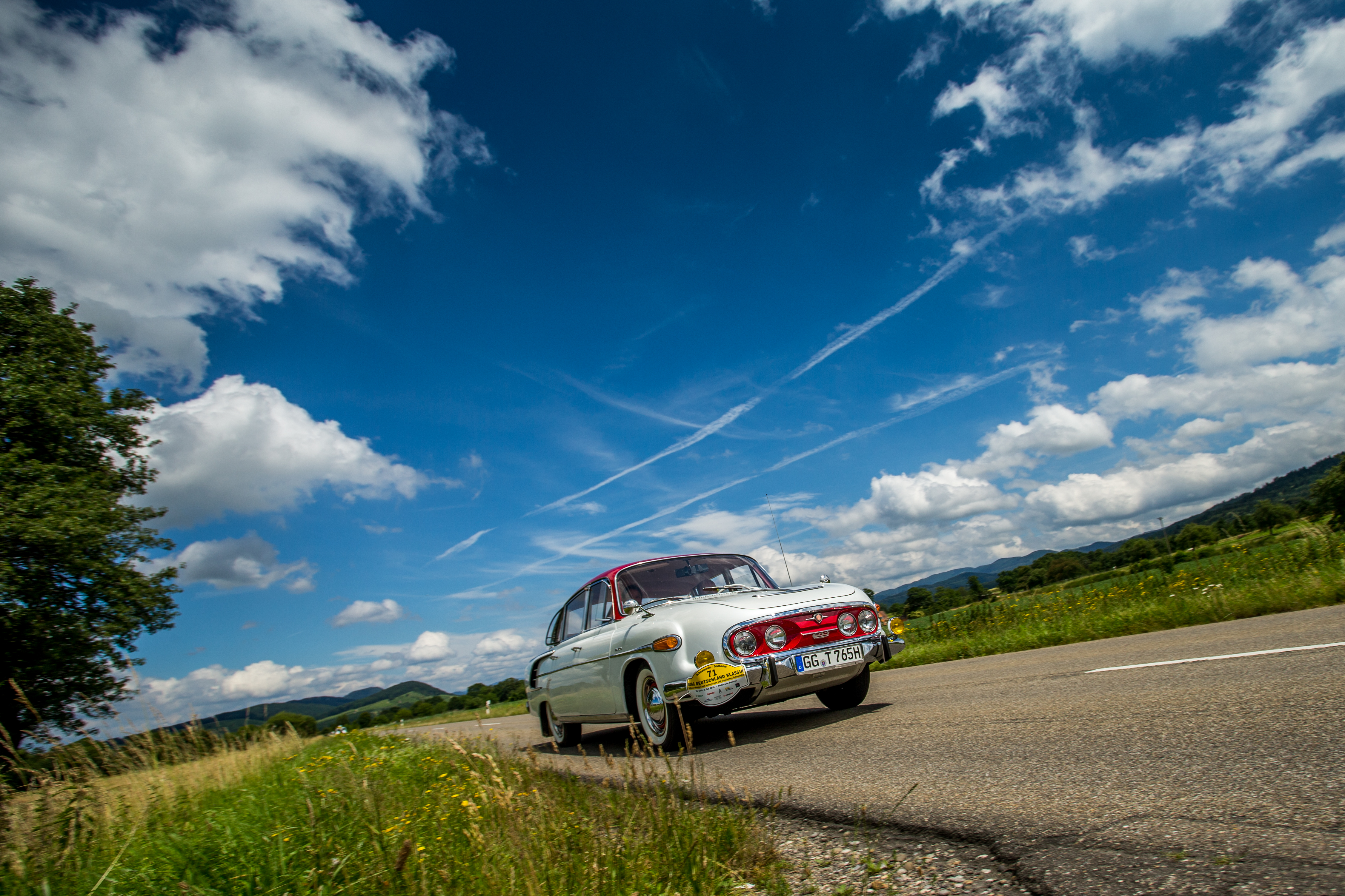 Wenn die Teilnehmer der Autowanderung in diesem Jahr links und rechts der ehemaligen deutsch-deutschen Grenze mit viel Fahrspaß unterwegs sind, dürfen Vertreter aus dem Osten natürlich nicht fehlen. Auch jenseits des Eisernen Vorhangs kannte man die Unterscheidung zwischen Luxusklasse und Alltagsauto: Der futuristische Tatra 2-603 von Hans-Karl Jahn und Gabriele Fiedler war 1965 mit seinem luftgekühlten V8-Motor im Heck ein anspruchsvolles High-Tech-Produkt der damaligen CSSR und meist nur für linientreue Genossen verfügbar. Näher am Volk, aber immer noch mit langer Lieferzeit behaftet, war der Wartburg 353 von Reinhold und Brigitte Bikar, dessen Hubraum von 993 ccm für 50 vollgasfeste PS gut ist. Mit dem Baujahr 1987 ist der DDR-Klassiker gleichzeitig eines der jüngsten Fahrzeuge im Tross der rollenden historischen Schmuckstücke.