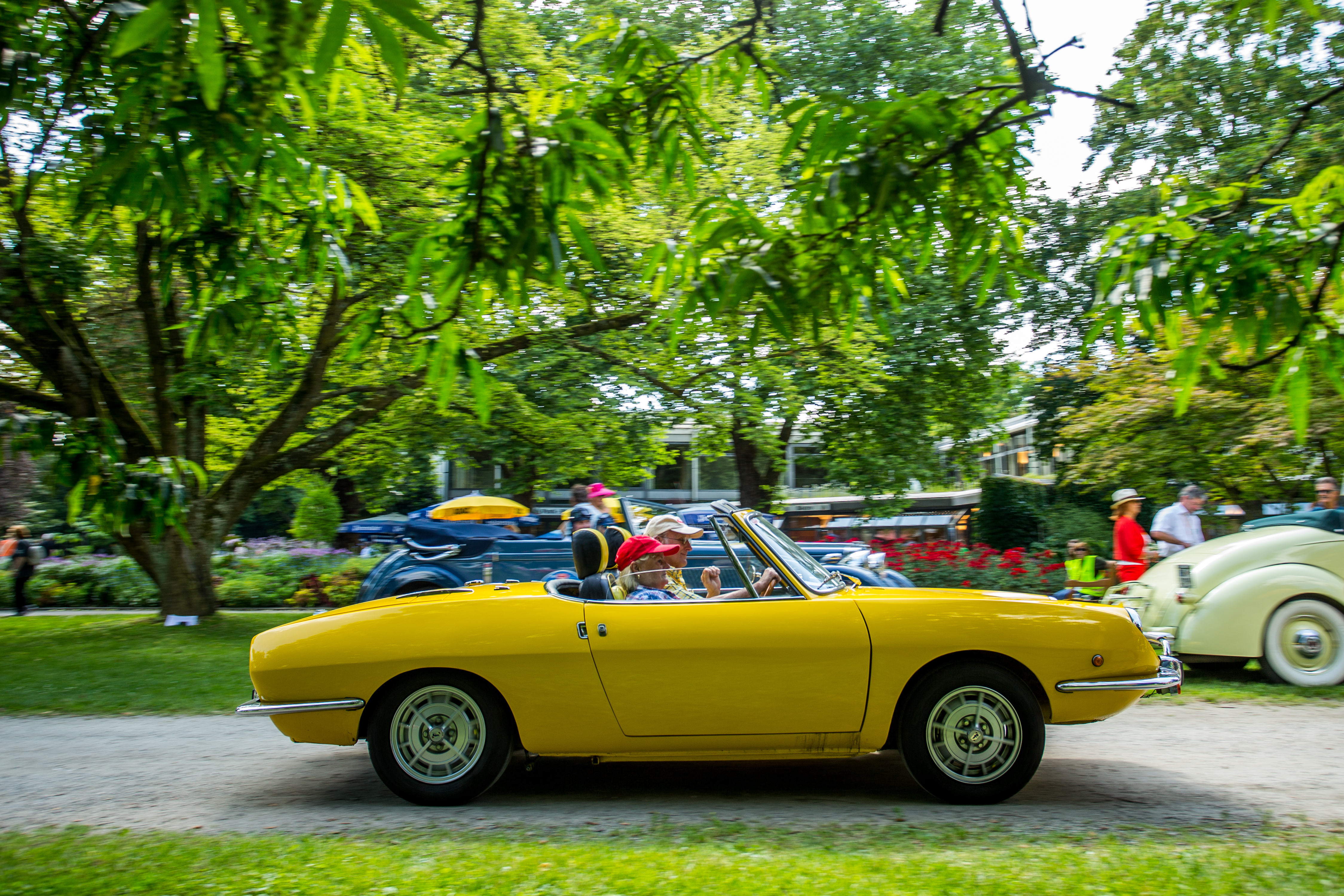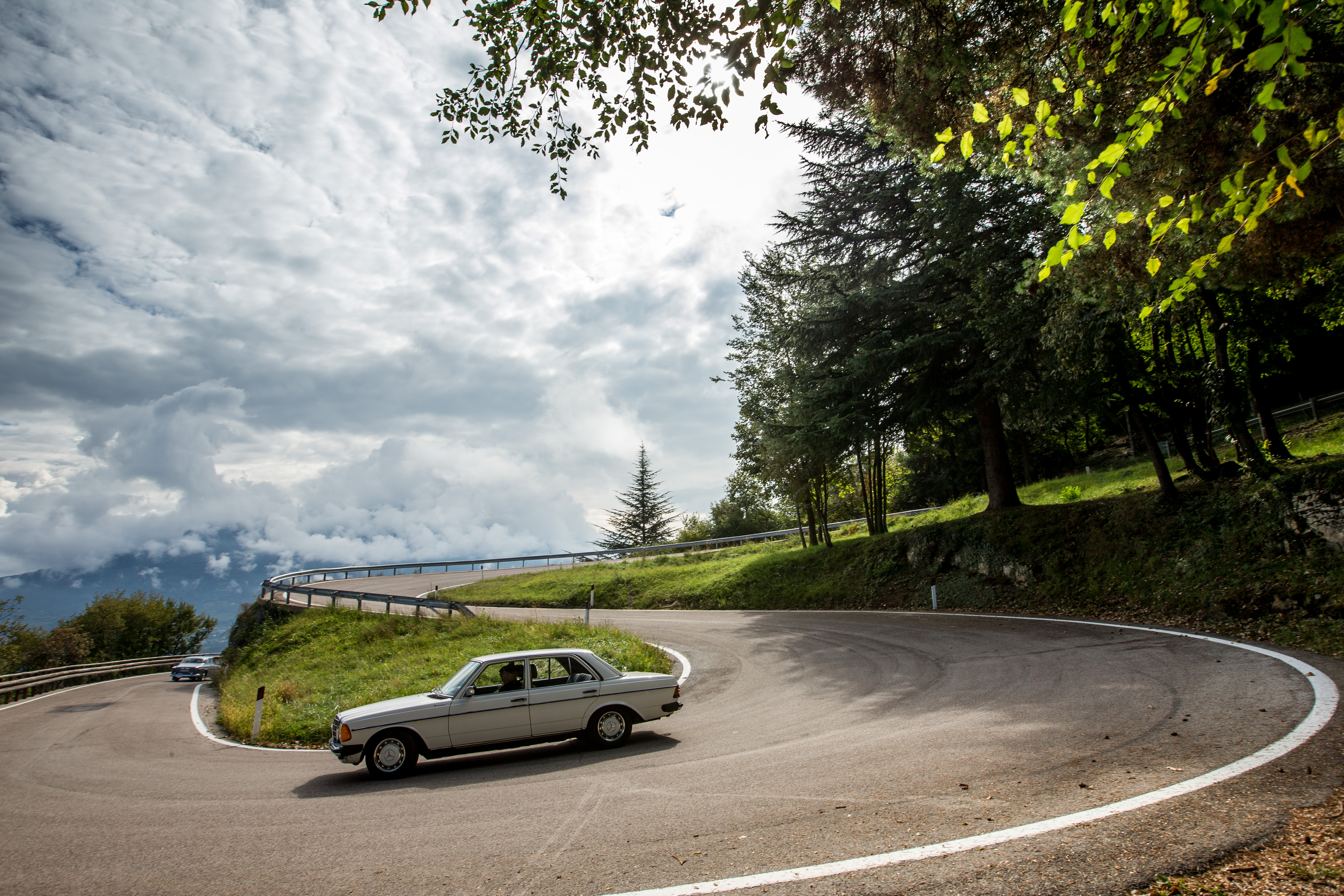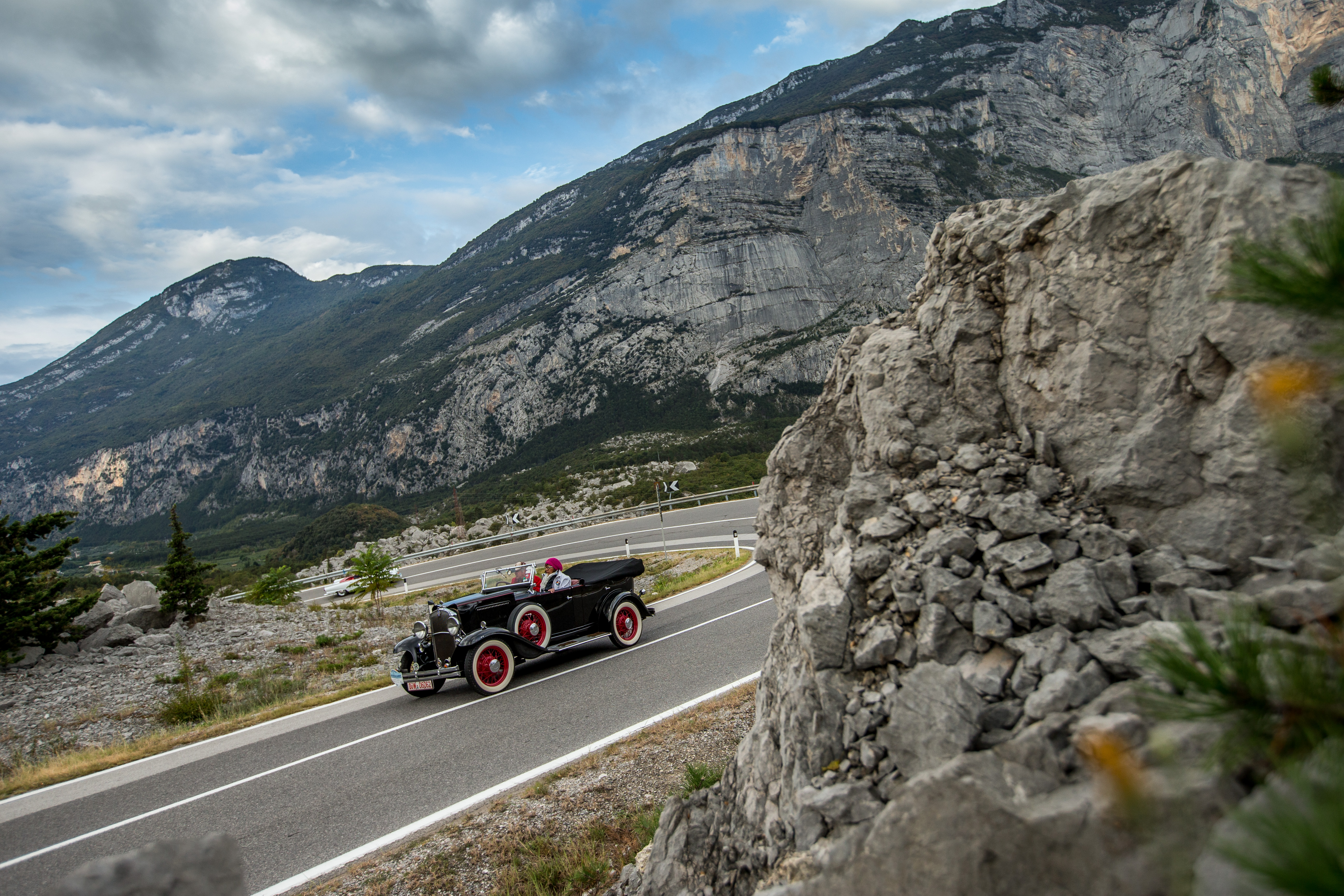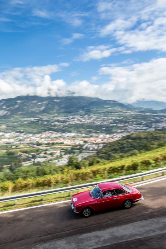 Für die Traumstraßen zwischen Trento und Molveno sind auch zwei kleine Italiener optimal - auch ohne dreistellige PS-Zahlen. Dem Fiat Sport Spider von Jürgen und Elisabeth Dresen von 1972 reichen 52 PS für jede Menge Fahrspaß. Und der Fiat 600D im Racing-Look der wilden Siebziger röhrt mit 70 PS durch die Täler der Dolomiten. Ergänzt wird das Italien-Kontingent u.a. vom Alfa Romeo 2000 GT Veloce von Alfons Siglreitmaier und Dr. Dietmar Nickel, die in ihrem feuerroten Klassiker ebenfalls eine bella figura abgeben.