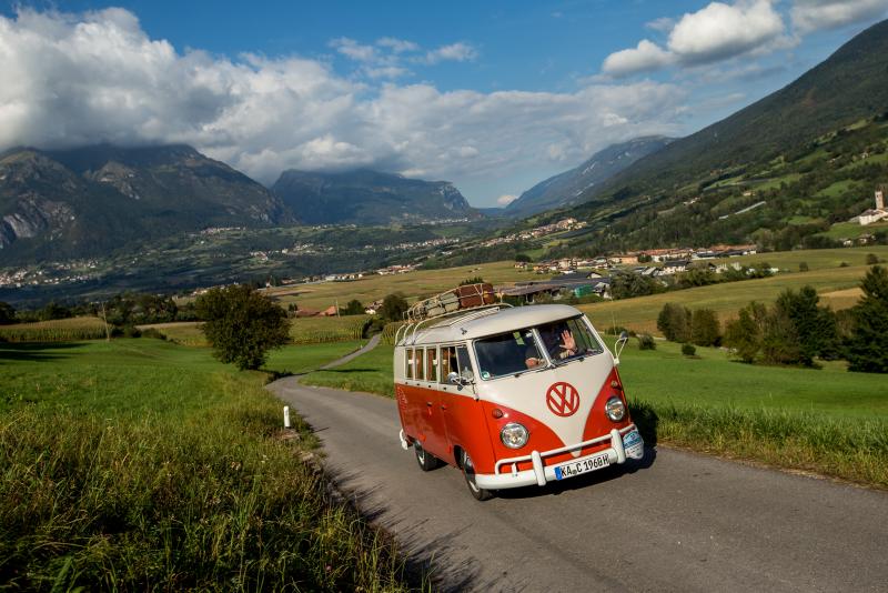 Die Rallye rund um den Gardasee ist in diesem Jahr auch ein PS-Biotop für sehr eckige, aber auch sehr praktische Fahrzeuge der Wirtschaftswunderzeit. Gleich mehrere VW T1 - Varianten des allerersten VW Bus - sind am Start. Clemens Grauff und Lutz Kiefer lenken den Klassiker aus Wolfsburg als Handwerkerkompatible Doppelkabine, während Fritz und Elisabeth Schweier den sympathischen VW-Klassiker als Großraum-Kastenwagen von 1964 bewegen.