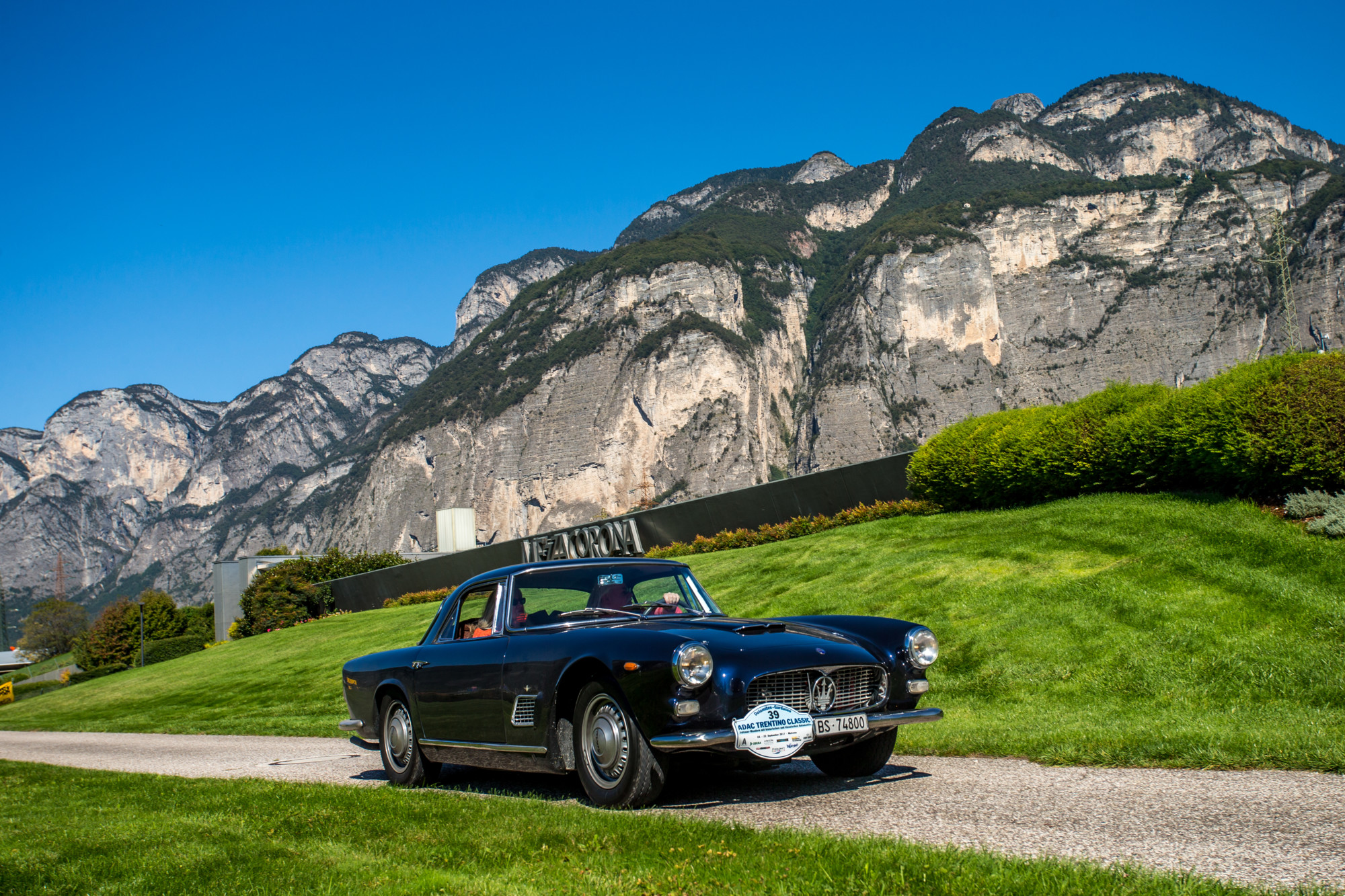 Deutlich eleganter gleiten Christian und Margarete Odemann durch die Alpentäler: Ihr Maserati 3500 GT Coupé von 1962 strahlt jene italienische Anmut aus, die die Traditionsmarke aus Modena weit über die italienischen Landesgrenzen hinaus bis heute berühmt macht. Mit 225 PS ist der Wagen mit dem Dreizack am Kühlergrill ein kräftiges und zugleich luxuriöses Reisemobil, das auf den abwechslungsreichen Etappen der ADAC Europa Classic 2019 für angenehmes Fortkommen sorgt.