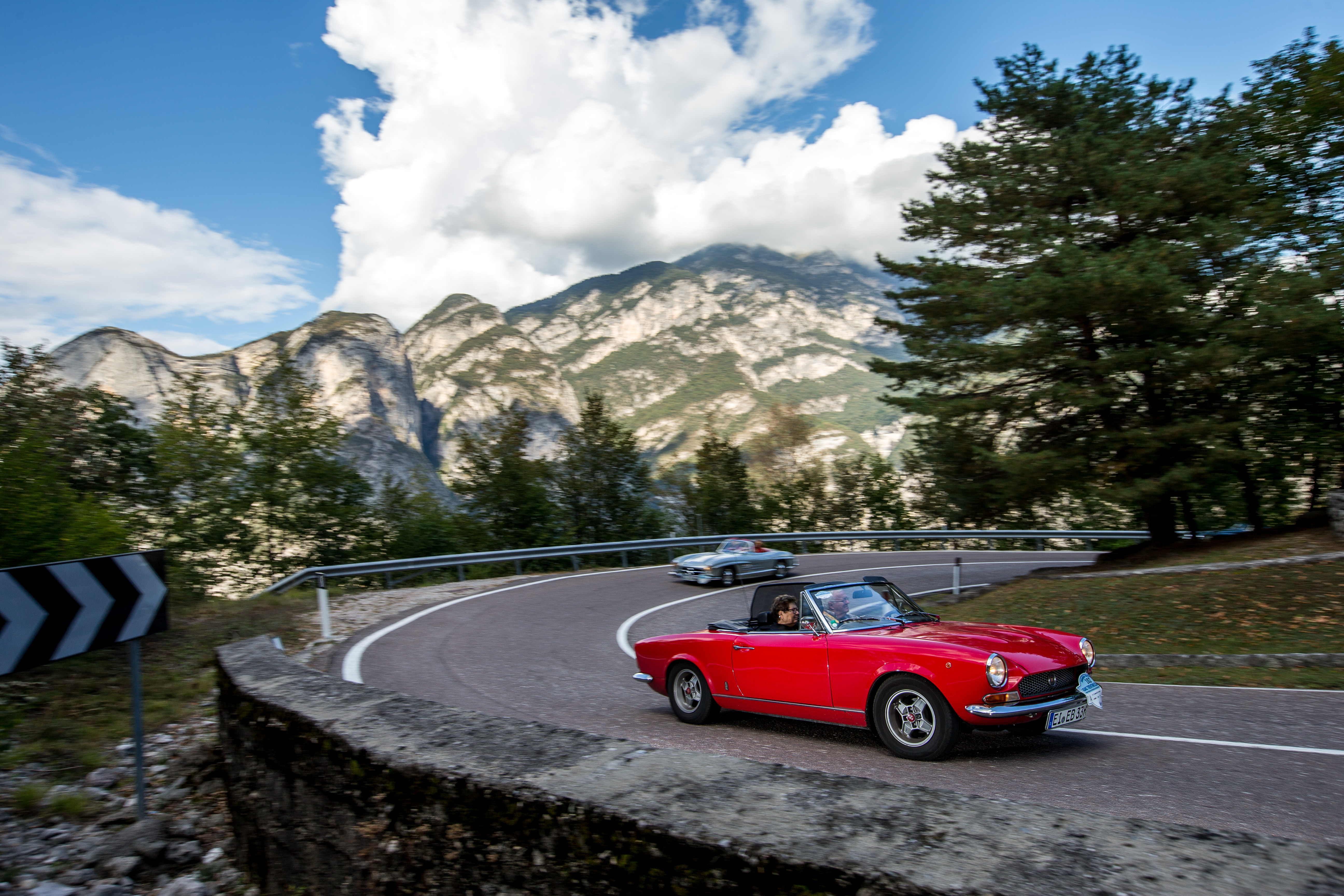 Zum Heimspiel inmitten der malerischen Berglandschaften Südtirols reisen zwei weitere besondere Italiener: Der 1969er Fiat 124 AS Sport Spider von Peter und Ursula Gisin ist mit seinen puren Karosserieformen aus dem Hause Pininfarina und dem Doppelnockenmotor für die idyllische Oldtimerwanderung ebenso gewappnet wie der kultige Fiat 600D von Michael und Jutta Kipp im stilechten Renn-Look aus dem Jahre 1963.