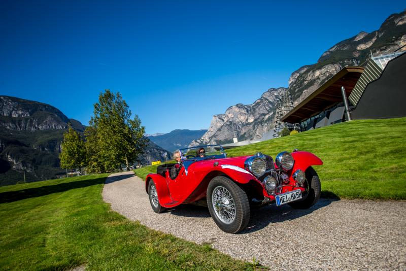 Reinsten Fahrspaß ohne den Luxus späterer Jahre verspricht hingegen der S.S. Jaguar 100 2½ Litre, Baujahr 1937, von Wolfgang und Ilse Köhler: Mit seinem rustikalen Fahrwerk verkörpert er den frühen britischen Roadster-Geist in Reinkultur. Am Lenkrad erfordert dieser rassige Sportwagen der Vorkriegs-Ära noch viel Kraft, genau wie der Triumph TR3 Sports von Johannes Paul Sczygiel und Rosemarie Uebler-Sczygiel aus dem Jahr 1959. Ohne festes Dach lässt der 100 PS-Sportler Fahrer und Beifahrerin die Gelegenheit, das alpin-mediterrane Klima Südtirols auf der Genusstour besonders intensiv auszukosten.