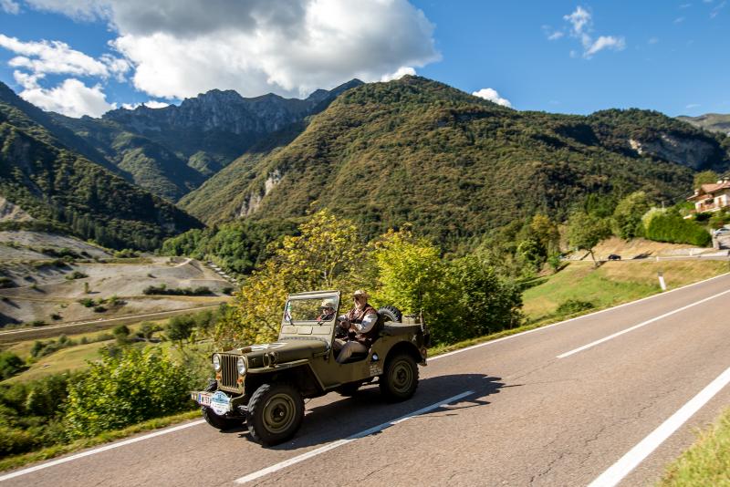 Ein vollkommen anderes Konzept verkörpert der Willys Universal Jeep CJ-3A von Libor und Christine Kratochvil. Dank Allradantrieb dürfte sich der rustikale Amerikaner auch auf den leichten Anstiegen hinauf zu gemütlichen Almen und satten Bergwiesen äußerst wohl fühlen. Mit seiner durchgehend geöffneten Karosserie bietet der Jeep seinen Passagieren zudem einen ungetrübten Rundumblick auf die schroffen Felswände der Region um Schenna.