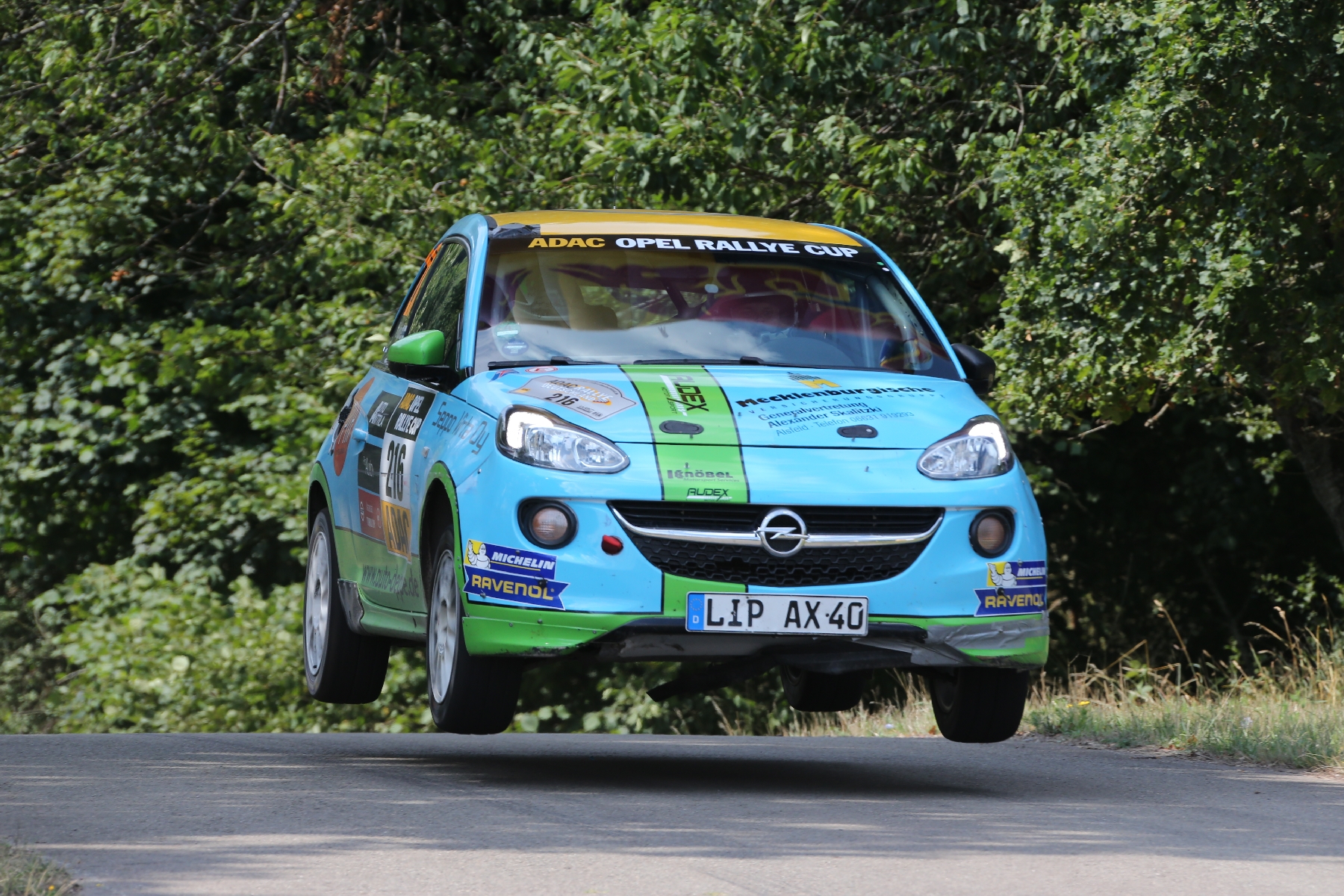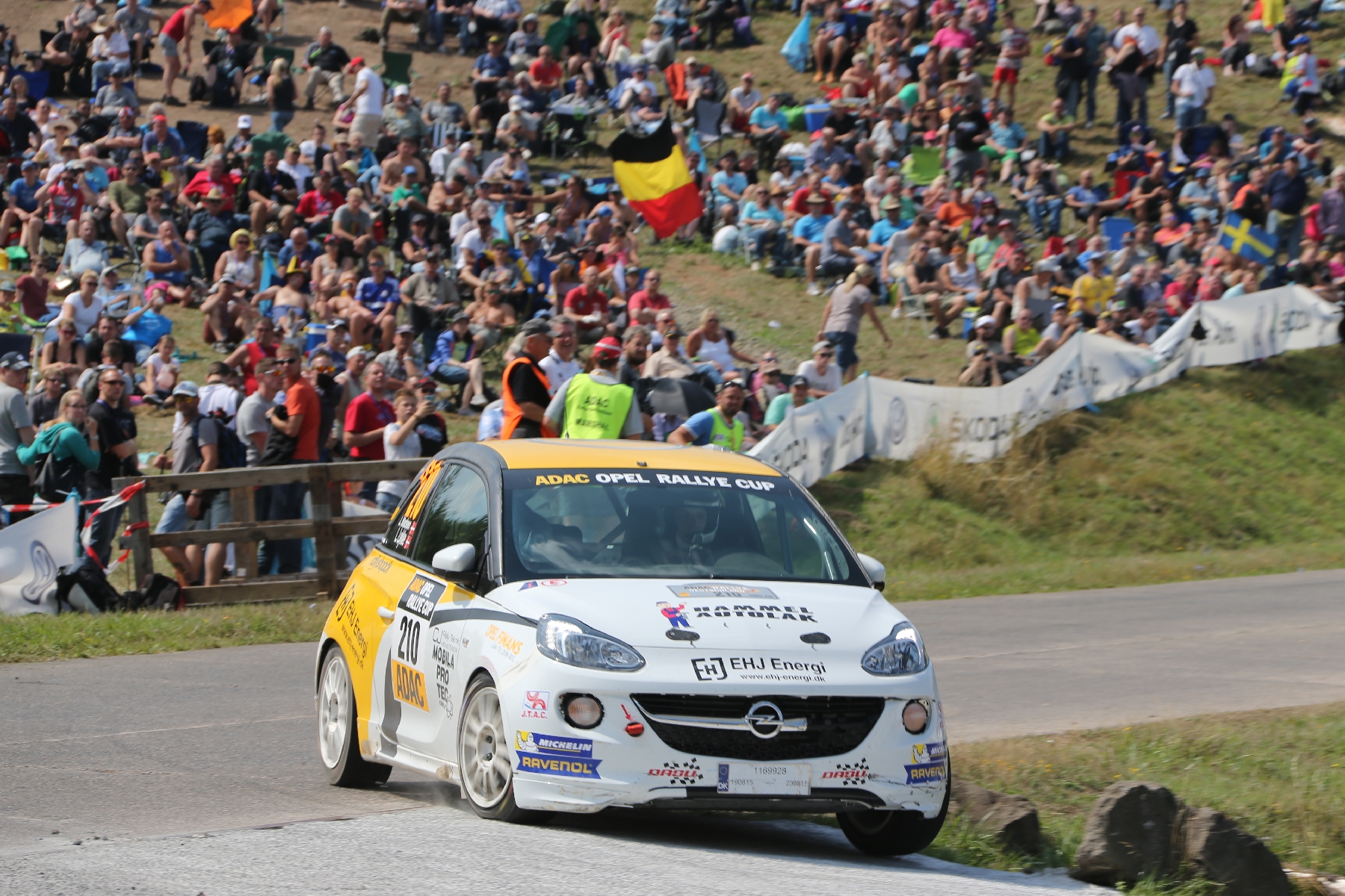 Dagegen schlug sich die Konkurrenz mit verschiedenen Problemen herum. Alleine beim zweiten Durchfahren der legendären, mehr als 45 Kilometer langen Wertungsprüfung „Panzerplatte“ erlitten insgesamt fünf ADAM Cup-Fahrzeuge (Neuville, Müller, Lindholm, Wacker, Tomaszczyk) einen Reifenschaden. Jacob Lund Madsen hatte nach der Enttäuschung im ersten Lauf einmal mehr alles auf eine Karte gesetzt und in den ersten vier Wertungsprüfungen am Samstag die Bestzeit erzielt. Doch ereilte den schnellen Dänen wie so oft Pech in Form eines elektrischen Problems – ein Unfall-Folgeschaden von der ADAC Cosmo Rallye Wartburg zwei Wochen zuvor. Unverdrossen mischten Madsen und seine Beifahrerin Line Lykke Jensen am Sonntagmorgen wieder mit und sicherten sich immerhin noch die Bonuspunkte für die meisten WP-Bestzeiten sowie den Gewinn der sogenannten „Power Stage“.