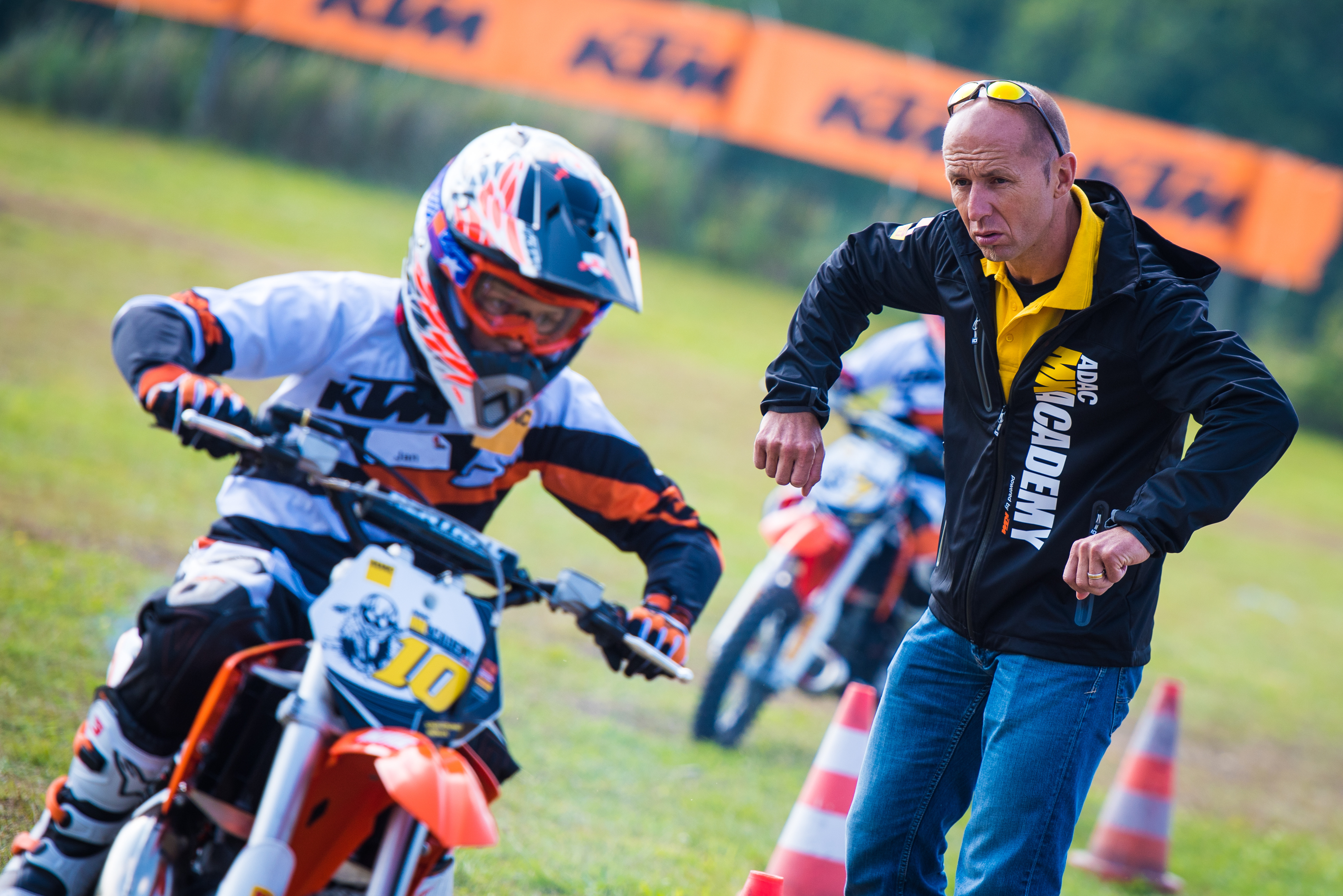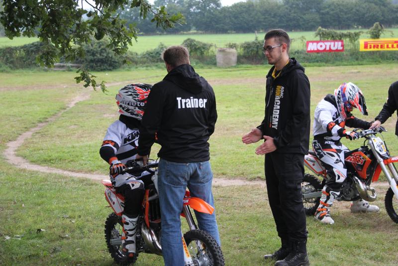 Für den Einstieg in die Sportart üben die Teilnehmer der ADAC MX Academy powered by KTM zunächst auf BMX-Fahrrädern, um sich an die Bodenbeschaffenheit zu gewöhnen und ein erstes Gespür für eine Motocross-Strecke zu bekommen. Anschließend darf sich jedes Kind auf einem kleinen MX-Bike versuchen. Die Motorräder sind von KTM mit einem Abreißschalter ausgestattet und in der Leistung gedrosselt, sodass die Trainer jederzeit eingreifen und die Maschine stoppen können. Die Sicherheit beim Motocrosssport geht immer vor, das lernen die jungen MX-Stars von morgen direkt bei ihrer ersten Erfahrung auf dem Motorrad.