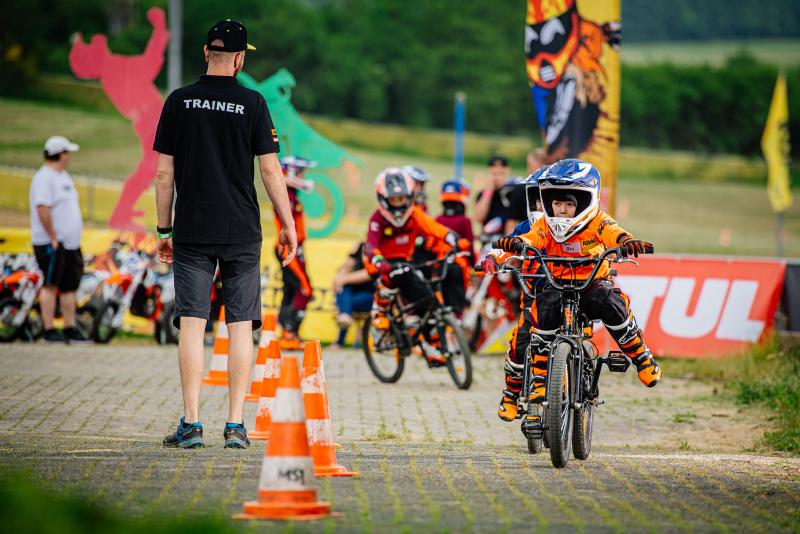 Bei den Schnuppertrainings weisen lizensierte Trainer die Teilnehmer in die grundlegenden Fähigkeiten zum Motocross-Fahren ein und ermöglichen die ersten Meter auf einem Motocross-Bike von KTM in sicherem Umfeld. Die Jüngsten machen die ersten Schritte dabei auf einem elektrischen Motorrad. Die sechs permanenten ADAC MX Academy-Stützpunkte im ganzen Bundesgebiet sowie die mobile „ADAC MX Academy on tour“ sind mit jeweils fünf KTM SX-E 5 und fünf KTM 65 SX ausgestattet. Das Kinder-Elektromotorrad SX-E 5 hat in der Trainingspraxis die Erwartungen mehr als übertroffen. Das Feedback der Teilnehmer und Trainer spricht für den Umstieg auf die modernen Elektro-Bikes: „Mit der elektrischen KTM SX-E 5 lernen die Kinder noch schneller und einfacher das Fahren. Der Elektromotor setzt weicher ein als der Verbrenner, was den Teilnehmern viel Sicherheit vermittelt. Zudem kann man bei den leisen Triebwerken von außen sehr gut Anweisungen geben“, berichtet Bernd Eckenbach, der als ehemaliger Motocross-Profi nun als Chief Coach arbeitet und die Trainings an allen ADAC MX Academy-Standorten betreut.