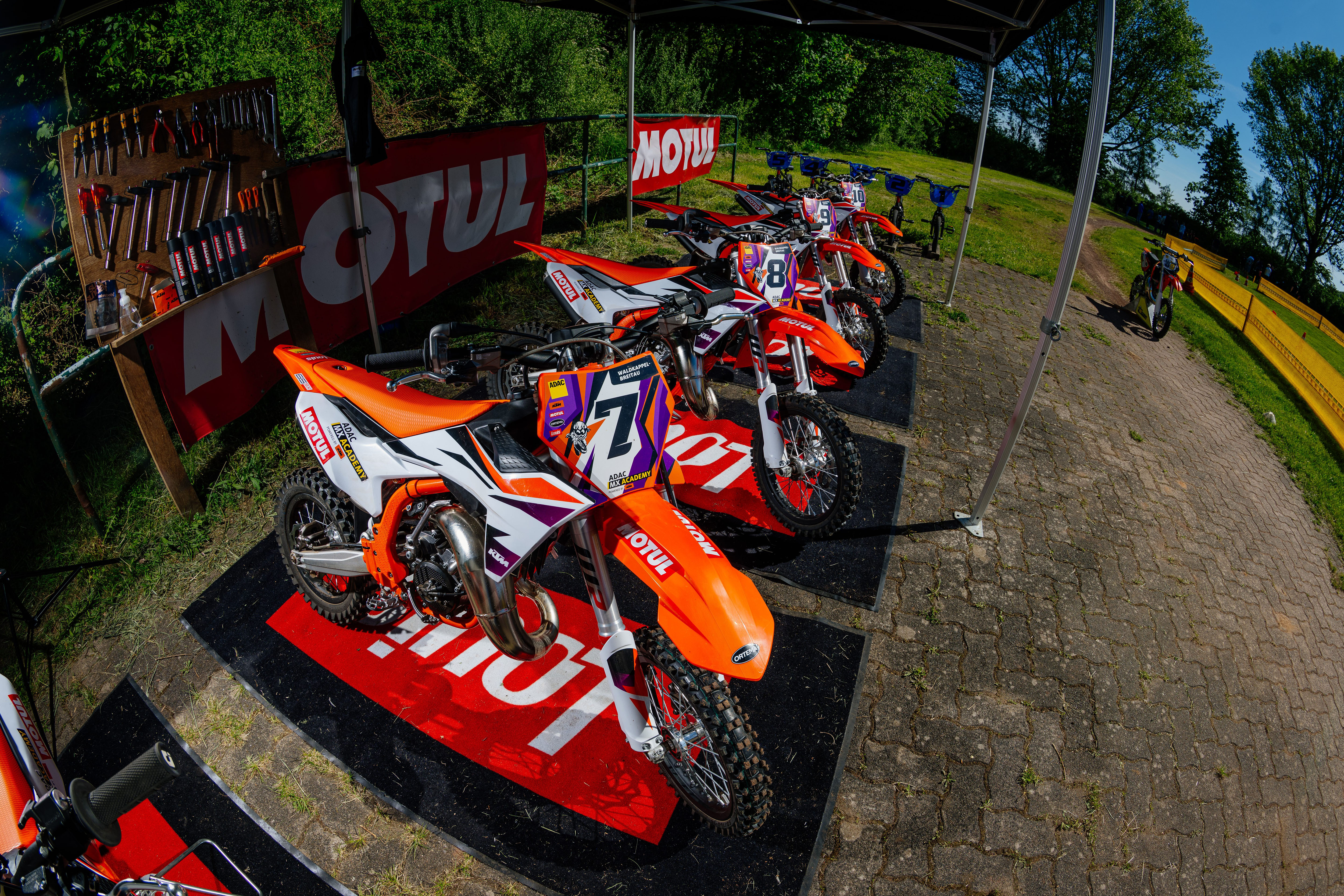 Die Kursgebühr von 80 Euro umfasst die gesamte Ausrüstung und Schutzkleidung, bereitgestellt durch die Partner der ADAC MX Academy. KTM stellt sowohl die Motorräder als auch die Schutzbekleidung. Den Kindern stehen die elektrisch angetriebene und sehr leicht zu fahrende KTM SX-E5 sowie die KTM 65SX mit Verbrennermotor zur Verfügung. Ortema steuert zur Erhöhung der Sicherheit die passenden Nackenstützen bei, Motul stellt sämtliche Schmier- und Pflegeprodukte für die Bikes zur Verfügung und das Motorrad Bekleidungs- und Technikgeschäft Louis liefert verschiedene Materialien für die Infrastruktur und Trainer.