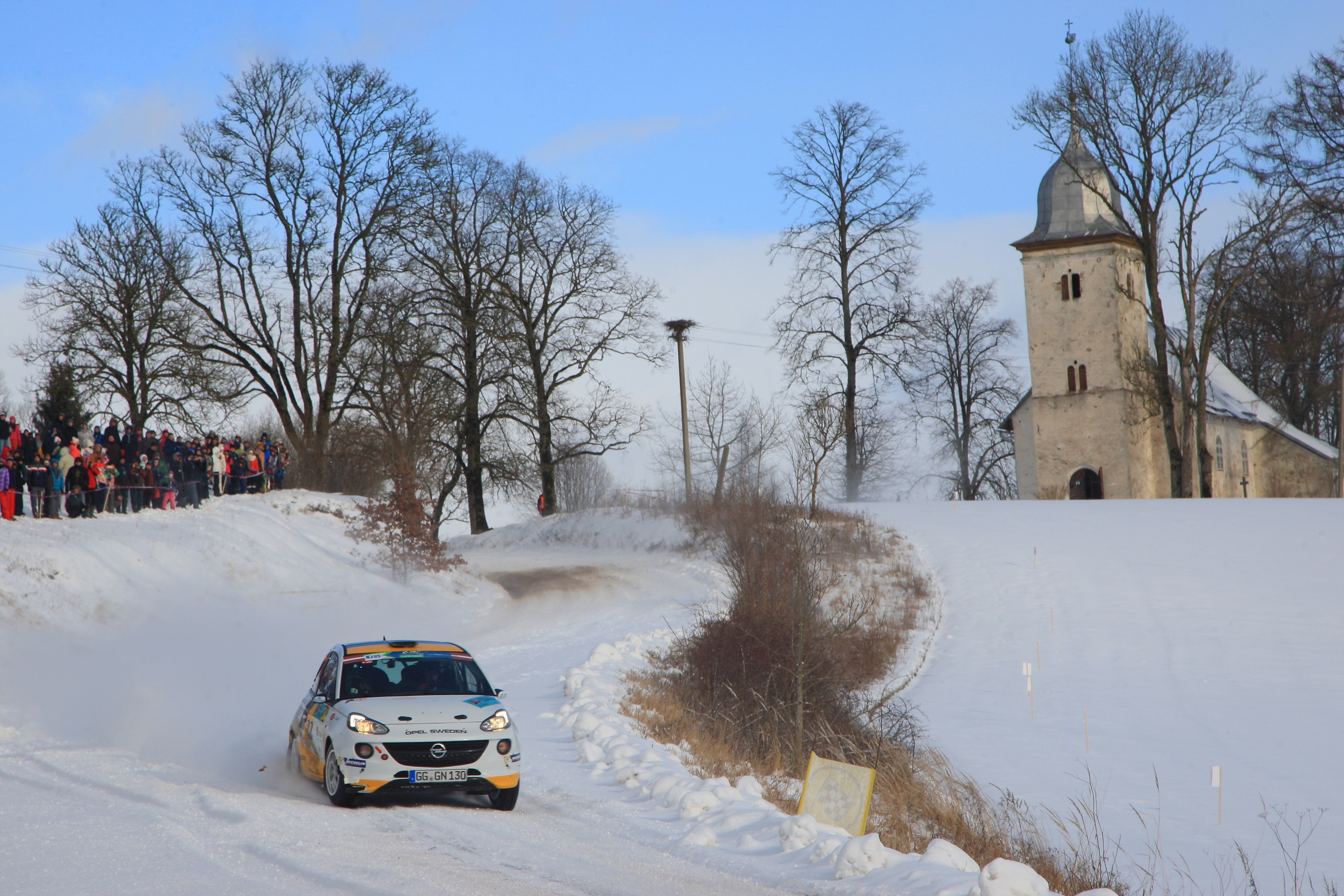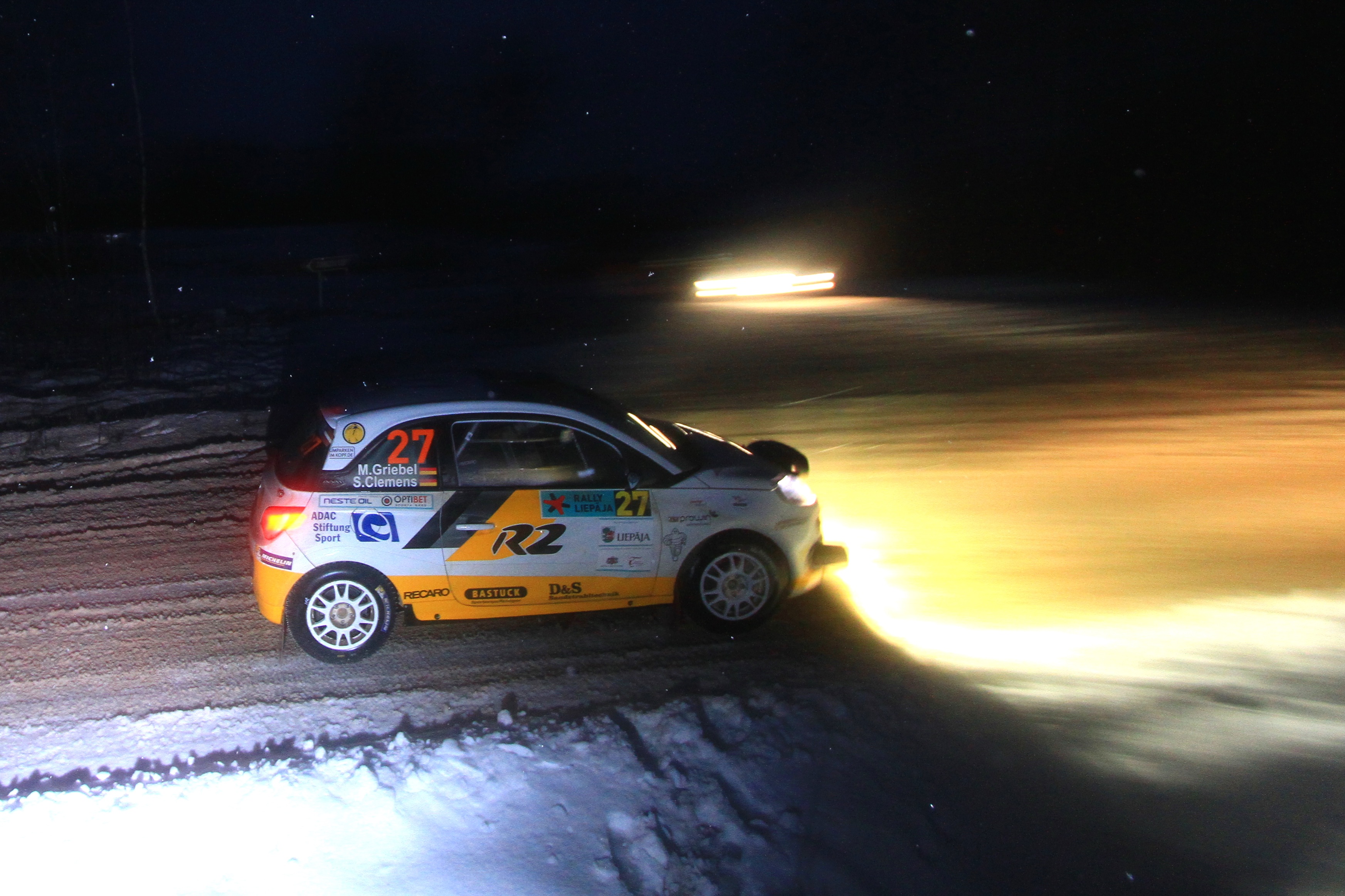 Auch die beiden Opel-Kundenteams mussten den extrem schwierigen Bedingungen beim EM-Auftakt Tribut zollen. Der Pole Aleks Zawada und seine französische Beifahrerin Cathy Derousseaux hatten in WP6 soeben ihre erste Bestzeit aufgestellt, als sie in der folgenden Prüfung in einen Graben rutschten und die Rallye aufgeben mussten. Großes Pech hatten der Sachse Julius Tannert und seine luxemburgische Copilotin Jennifer Thielen, die in der zweiten Wertungsprüfung ohne äußere Gewalteinwirkung ein Rad an ihrem unter Bewerbung des ADAC Sachsen laufenden ADAM R2 verloren. Um weitere Testkilometer auf Schotter und Schnee zu absolvieren, traten die ADAC Stiftung Sport-Förderpiloten zum zweiten Rallye-Tag wieder an und erreichten, wenn auch außerhalb des Klassements, immerhin das Ziel in Liepaja.