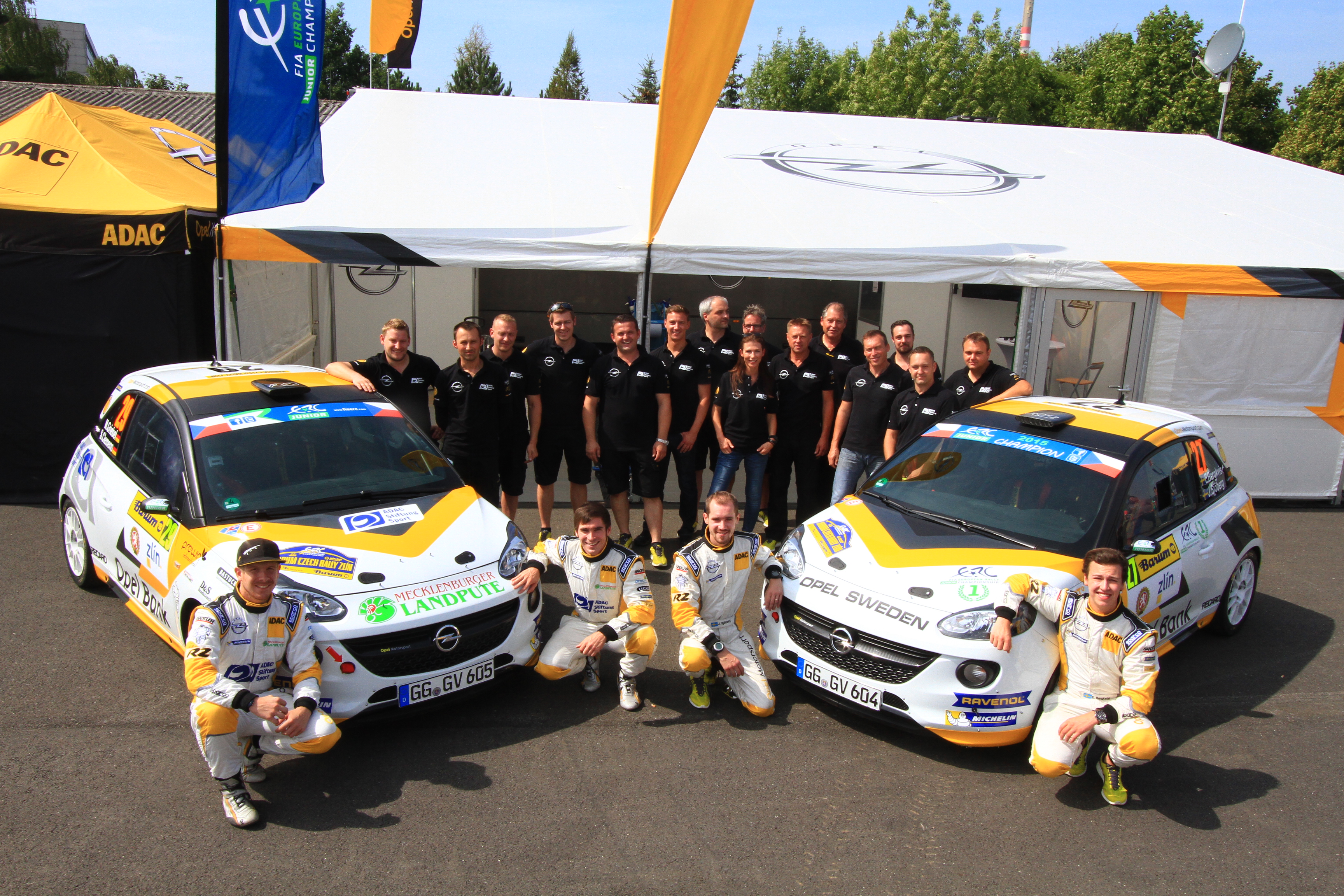 Zlín. Das ADAC Opel Rallye Junior Team hat die Rallye-Junior-Europameisterschaft (FIA ERC Junior) 2015 mit einer weiteren glanzvollen Vorstellung abgeschlossen. Der schwedische Opel-Werkspilot Emil Bergkvist (21, Torsåker) und sein Co-Pilot Joakim Sjöberg (29, Ösmo), die bereits vorzeitig den Junior-EM-Titel errungen hatten, gewannen die Barum Czech Rally Zlín im Osten der Tschechischen Republik überlegen. „Ich bin überglücklich“, strahlte Bergkvist nach seinem dritten Saisonsieg in der aus sechs Läufen bestehenden FIA ERC Junior 2015. „Diese Rallye war ein perfekter Abschluss einer perfekten Saison. Alles lief wie am Schnürchen, wir konnten das Geschehen von der Spitze aus kontrollieren. Wir alle haben so hart für diesen Erfolg gearbeitet, und es ist wunderschön zu sehen, dass sich die harte Arbeit gelohnt hat. Vielen Dank an mein fantastisches Team. Ohne sie wäre das alles nicht möglich gewesen.“