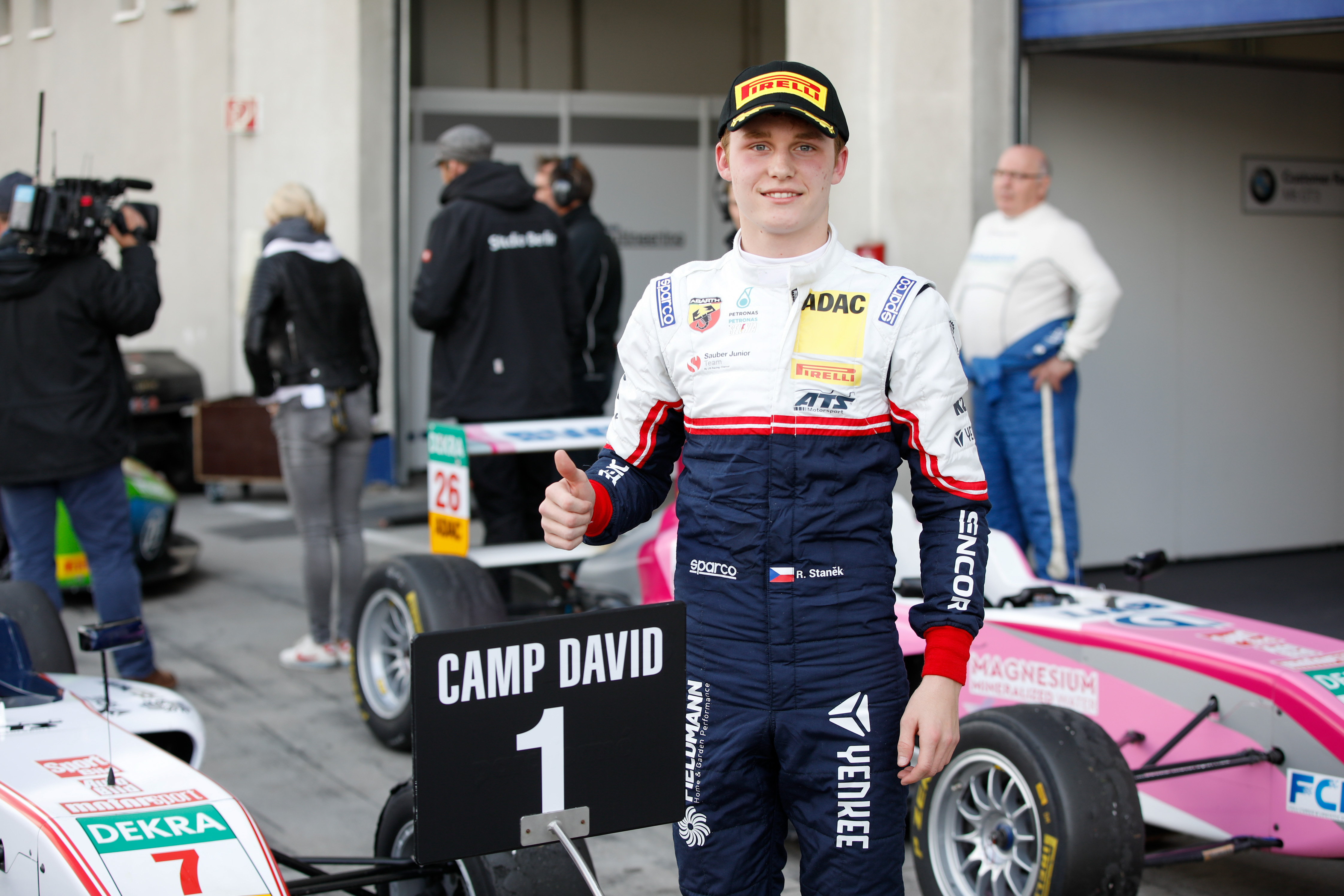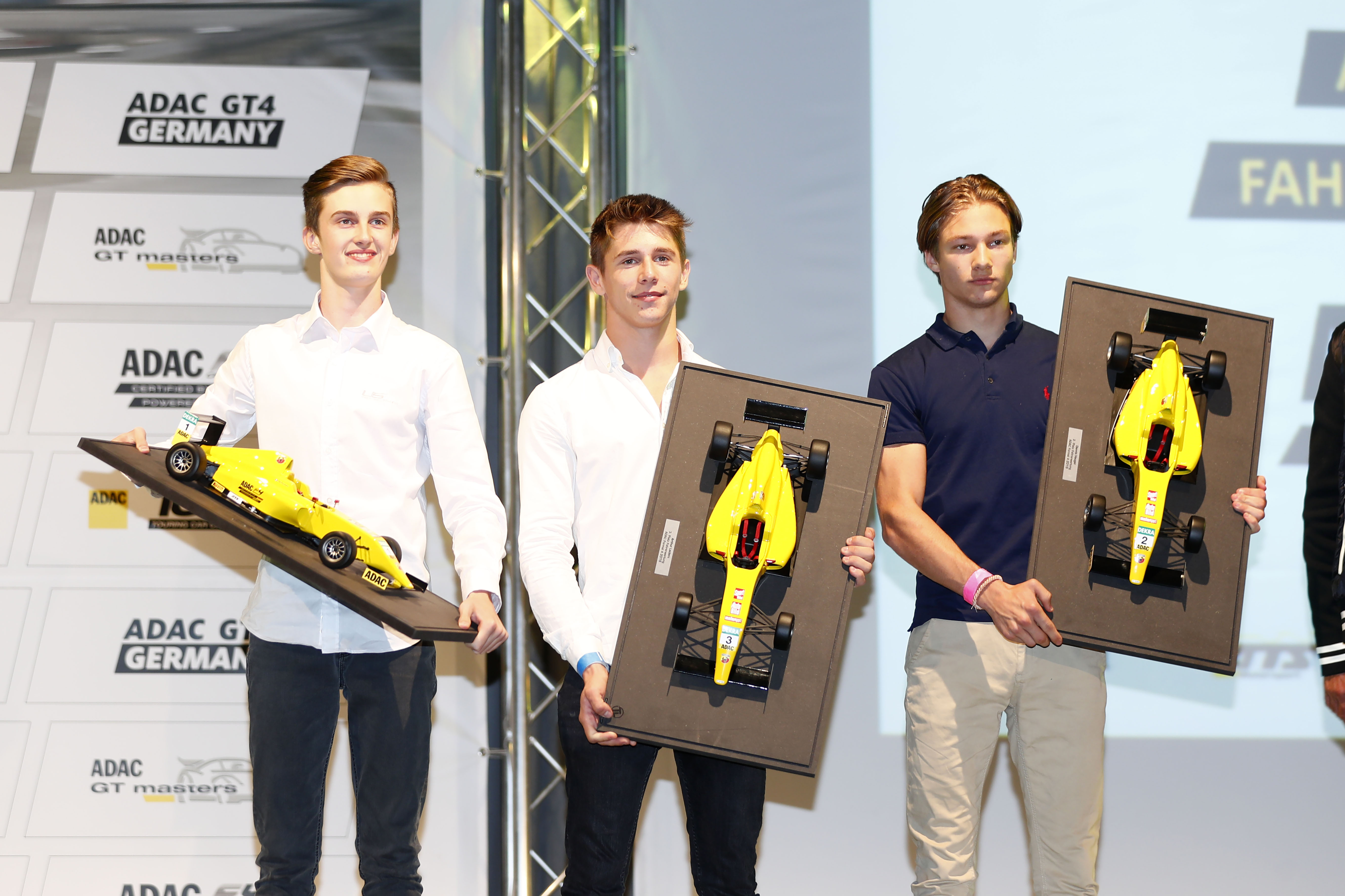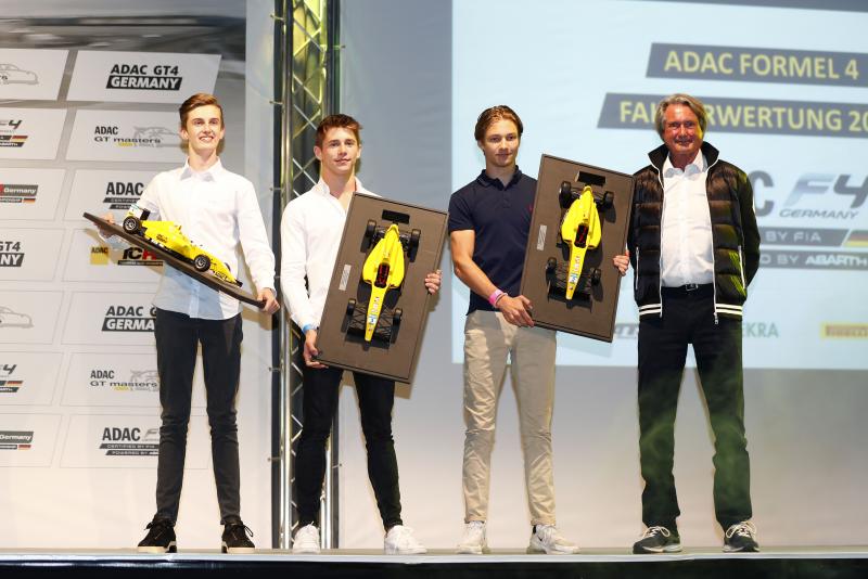 ADAC Formel 4, Meisterfeier, Roman Stanek, Joshua Dürksen, Thomas Voss (ADAC Leiter Motorsport und Klassik)