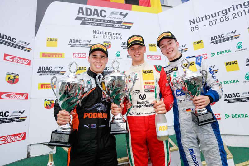 München. Die zweite Saison der ADAC Formel 4 gehört seit dem ersten Oktober-Wochenende nach 24 spannenden Rennen der Vergangenheit an: Joey Mawson (20, Australien, Van Amersfoort Racing) gewann die Fahrerwertung vor Mick Schumacher (17, Deutschland, Prema Powerteam) und Mike David Ortmann (16, Ahrensfelde, ADAC Berlin-Brandenburg e.V.). Den Sieg in der Rookiewertung holte Nicklas Nielsen (19, Dänemark, Neuhauser Racing) vor den Prema-Powerteam-Piloten Juri Vips (16, Estland) und Juan Manuel Correa (17, USA/Ecuador). Den Sieg in der Teamwertung schnappte sich das italienische Prema Powerteam (459,5) im letzten Rennen vor dem niederländischen Team Van Amersfoort Racing (455). Das Team ADAC Berlin-Brandenburg e.V. (356) sicherte sich knapp Rang drei vor dem Kerpener Rennstall US Racing (351) von Gerhard Ungar und Ex-Formel-1-Pilot Ralf Schumacher.