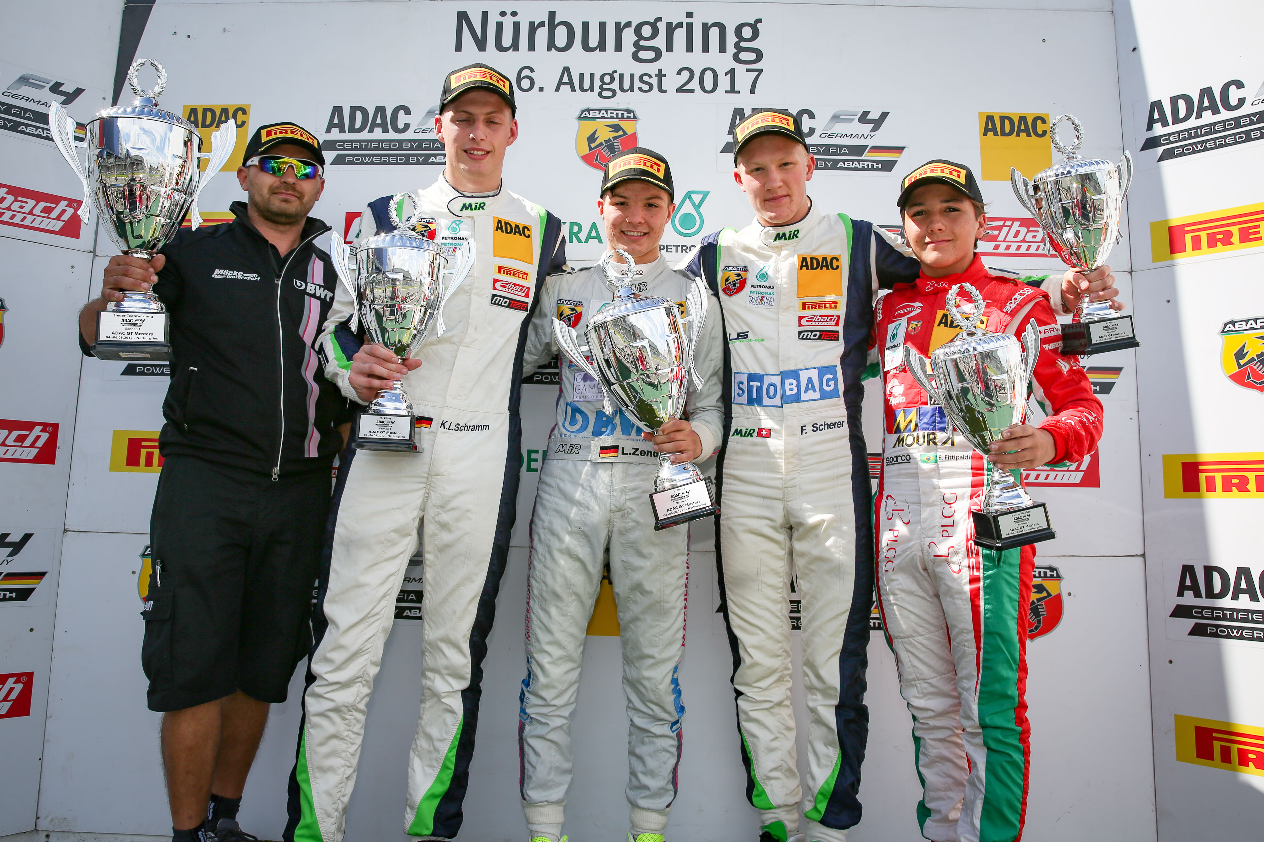 The race was stopped and restarted behind the safety car because of the incident. Running time was then reduced to 20 minutes. Lirim Zendeli successfully defended P1 from Kim-Luis Schramm after the restart. To their rear, Fabio Scherer overtook Andreas Estner, who had been in P3, and put pressure on team-mate Schramm right through to the end of the race.