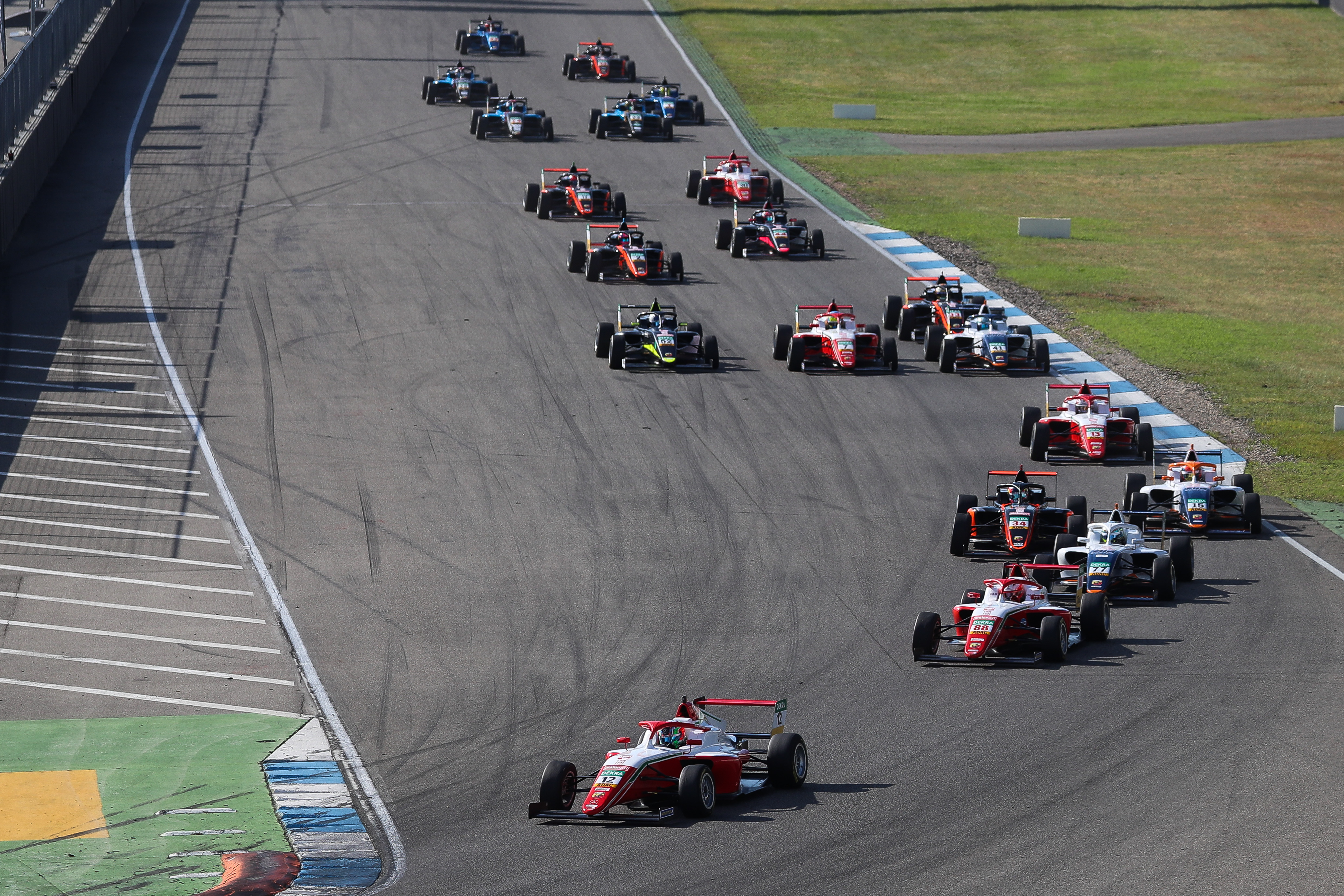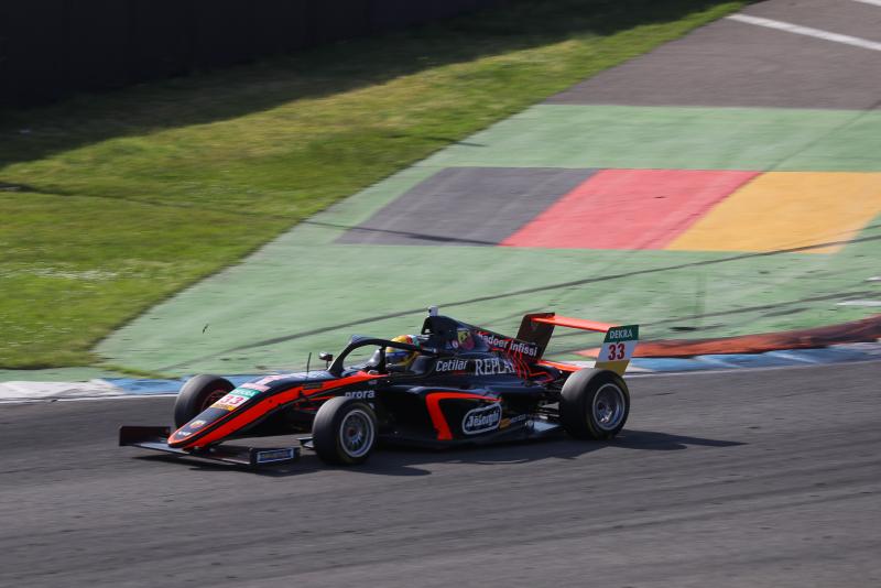For race six of the season, the top eight from Sunday morning’s race lined up in reverse order. Conrad Laursen (16/DNK/Prema Racing) started from pole position, while Marcus Amand started the 30-minute race alongside him on the front row. By this point in the day, the temperature in the Schwetzinger Hardt woodland had climbed to 25 degrees Celsius under a clear sky. Amand made a good start and took the lead in the run-up to turn one. The 16-year-old managed to open a gap in the early stages, but the appearance of the safety car on lap five saw the field bunch back together. When racing resumed two laps later, the US Racing driver defended his position, while Antonelli continued his march towards the front. The decisive manoeuvre came on lap ten, when Antonelli overtook Amand to make it a hat-trick, having also won the Saturday race. Only Dennis Hauger (NOR) had achieved this feat before him, in Hockenheim in 2009. “The start went great for me and I was able to pull clear of the second-placed car. However, the safety car did not help me and I was then unable to go with Antonelli. Despite this, I am pleased with my first podium,” said Amand.