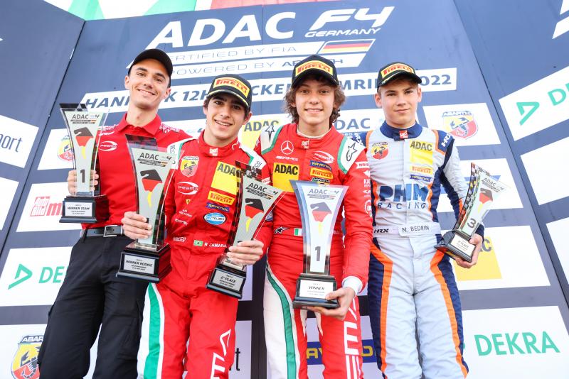 Barnard ended the race in third place. This was his second podium at the former Formula 1 circuit. “The whole weekend went well for me, and I am very pleased with the results. I have been able to make some good progress. Let’s hope that continues in the coming races,” said Barnard. Camara came home fourth as the best-placed rookie, followed by Jonas Ried (17/Ehingen). The German from PHM Racing was pleased with his best result of the season in ADAC Formula 4. Charlie Wurz (17/AUT/Prema Racing), Martinius Stenshorne (16/NOR/Van Amersfoort Racing), Oleksandr Partyshev (16/UKR/Jenzer Motorsport) and Conrad Laursen (16/DNK/Prema Racing) also finished in the points. Watched on by his father, former Formula 1 driver Luca Badoer, Brando Badoer (15/ITA/Van Amersfoort Racing) finished in the top ten. Emerson Fittipaldi jr. (Van Amersfoort Racing) was cheered on by his father and two-time Formula 1 world champion Emerson Fittipaldi, who was in Hockenheim to watch the racing. The 15-year-old Brazilian crossed the finish line in 12th place.