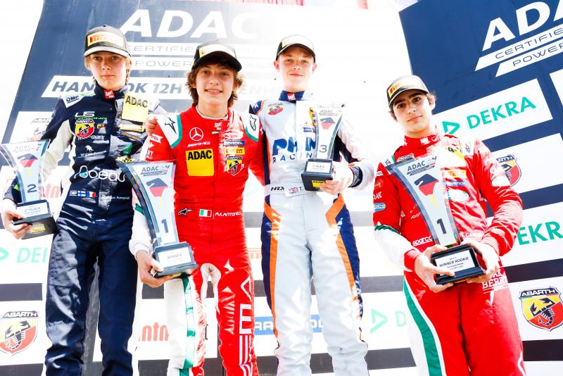Sunday’s first race at the 4.574-kilometre circuit took place in sunshine and temperatures around 15 degrees Celsius, and Antonelli benefitted from his pole position. Behind the pole-sitter, Camara and Barnard battled it out for second place. 17-year-old Barnard initially passed the Prema driver on the opening lap, but Camara was able to bounce back one lap later. Meanwhile, Mercedes Junior Antonelli set about consistently increasing his lead and went on to take his fourth win of the season in the ADAC’s high-speed school. Camara was followed over the finish line in second place by his team-mate Camara. Barnard eventually had to settle for fourth place, having lost out to his team-mate Bedrin. The 16-year-old was closing on Barnard all the time, and pulled off the decisive overtaking manoeuvre on lap 14. This earned him his first podium of the season. Barnard and Martinius Stenshorne (16/NOR/Van Amersfoort Racing) completed the top five.