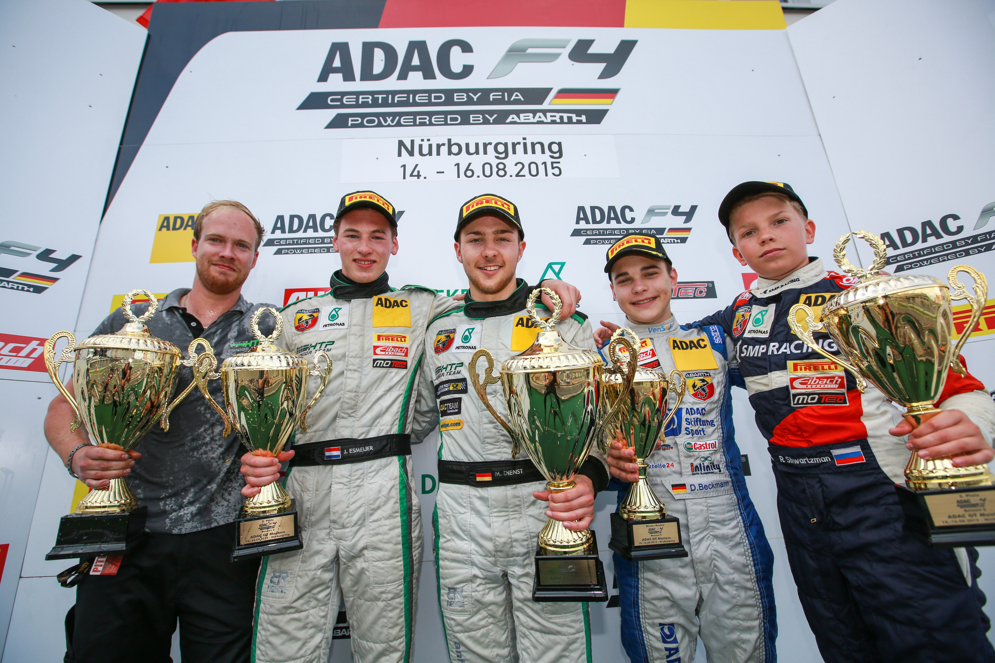 David Beckmann (15, Hagen, kfzteile24 Mücke Motorsport) verbesserte sich in der letzten Rennrunde auf den vierten Platz, nachdem Ralf Aron (17, EST, Prema Powerteam) von der vierten auf die siebte Position zurückgefallen war. Damit war ADAC Stiftung Sport Förderpilot Beckmann der bestplatzierte aller 17 Formel-Neueinsteiger. Der Pokal auf dem Siegerpodium wurde dem 15-Jährigen vom früheren Formel-1-Piloten Ralf Schumacher, seit diesem Jahr Stiftungsratsmitglied der ADAC Stiftung Sport, übergeben.