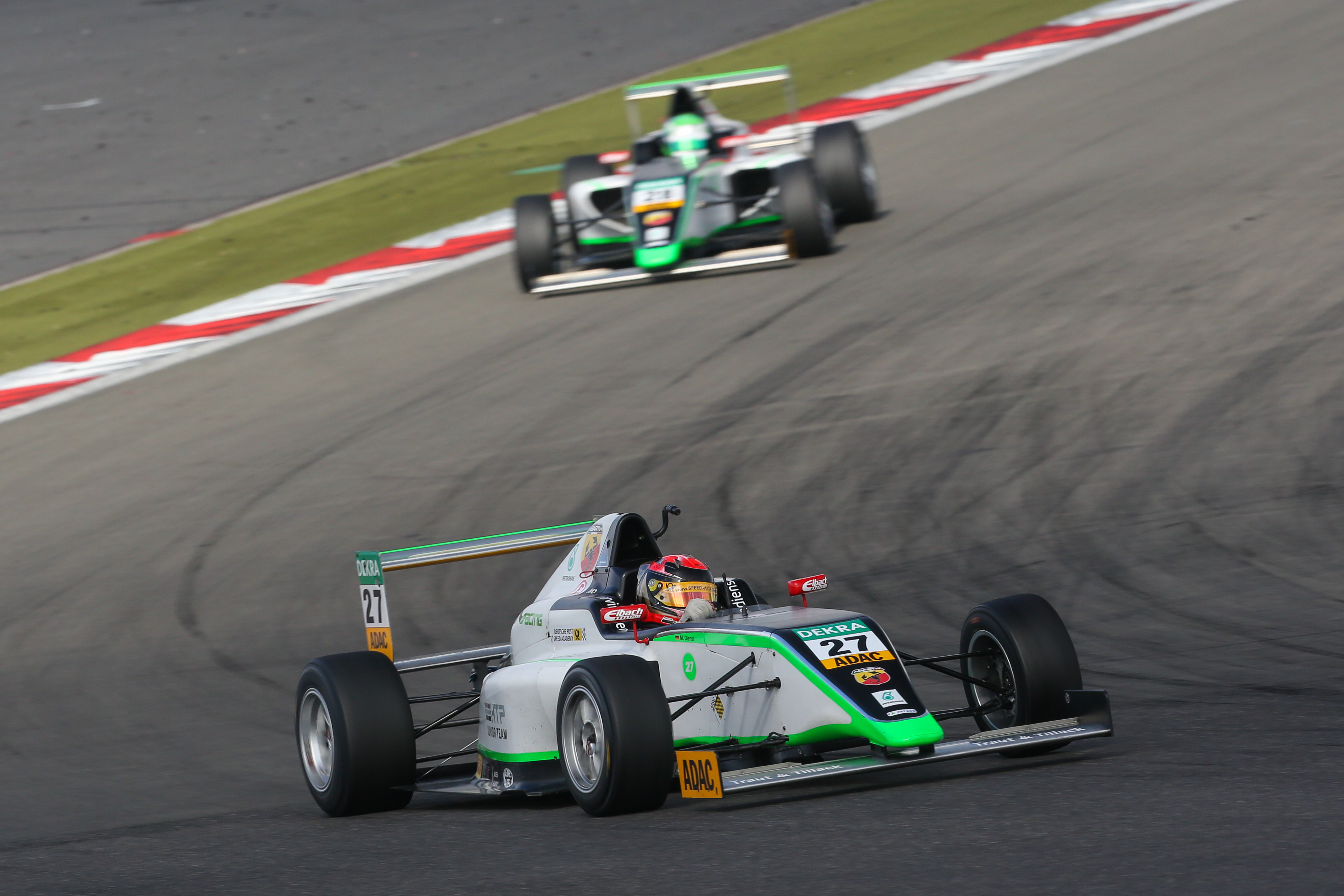„Nun führe ich die Meisterschaft an und freue mich natürlich. Wichtig ist aber, am Ende der Saison ganz oben zu stehen - bisher läuft alles nach Plan“, sagte Dienst. Die Startphase verlief an der Spitze ähnlich wie im ersten Rennen. Dienst übernahm von Startplatz zwei die Führung von Pole-Setter Esmeijer auf dem Weg in die erste Kurve. In der Folge ließ sich der neue Gesamtführende auch von zwei Safety-Car-Phasen nicht aus der Ruhe bringen und fuhr seinen fünften Saisonsieg über die Ziellinie. Esmeijer konnte seinem Teamkollegen nicht gefährlich werden, sicherte seine vierte Podestplatzierung in diesem Jahr aber bis zum Zieleinlauf.